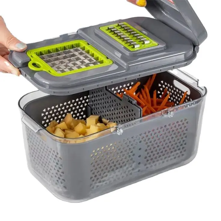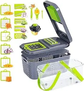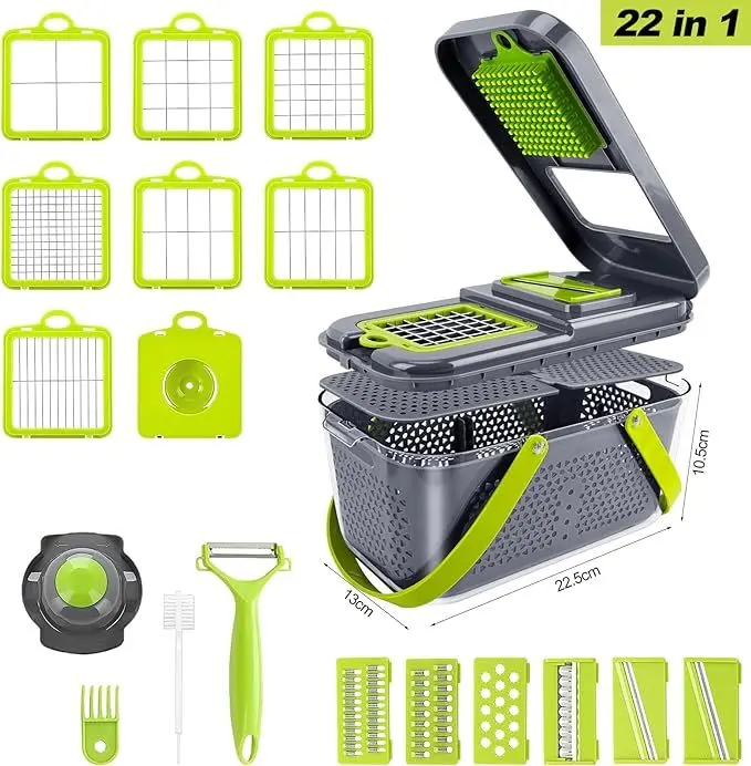 Versatilidad 22 en 1: 13 cuchillas de acero inoxidable para cortar, rebanar, picar y rallar con facilidad.